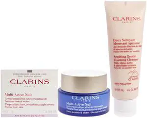 Multi-Active Night Cream - Normal to Dry Skin and Soothing Gentle Foaming Cleanser Kit by Clarins for Unisex - 2 Pc Kit 1.7oz Cream, 4.2oz Cleanser