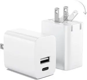 USB C Wall Charger Block 20W 2-Pack Dual Port Wall Charger Adapter with Foldable Plug Fast Charger for iPhone 15/15 Pro/14/14 Pro Max/13 Galaxy iPad Google Pixel Galaxy(White)