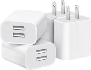 4 Pack USB Wall Charger Dual Port Plug Adapter for Wall Outlet Charging Block USB Power Adapter for iPhone 14/13/12/11 Pro/Pro Max XS/XR/X Galaxy Pixel Moto and Android Phones (White)