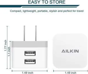 2Pack USB Wall Charger Plug 2.4A Dual Port USB Adapter Power Cube Fast Charging Station Box Base for iPhone 17 16 15 14 13 12 Pro Max SE 11 XR XS Phones Charge Block-White Brick