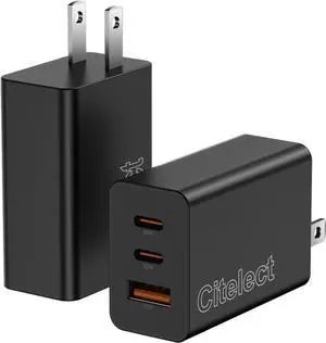 2Pack 65W USB C Charger Block 3Port Fast Charging Adapter Type C Fast Charging Blocks Cube PD USBC Wall Plug+QC3.0 USB A Charger Brick for MacBook Pro/Air iPad iPhone 17/16 S25 &More-Black