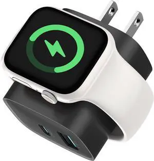 Charging Blocks for Smart Watch 3-in-1 PD 20W USB C Charger Block with Built-in Wireless Watch Charging Dual Ports Wall Charger Compatible with iPhone AirPods iWatch Black