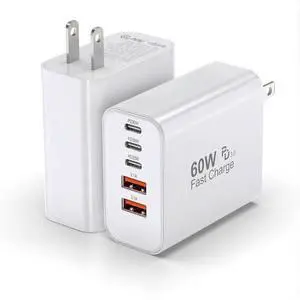 USB C Charger Block 2-Pack 60W 5 Ports USBC Wall Charger Plug Fast Charging QC Multiport PD Adapter Chargers Type C Box Brick Cube Compatible with iPhone 17 16 15 14 13 12 Pro Max