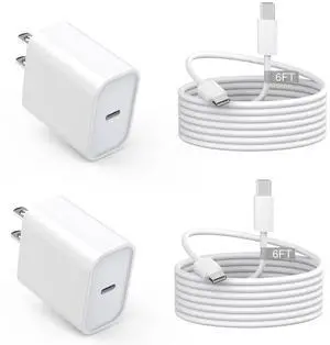USB C Wall Charger Block 20W 2-Pack Dual Port PD Power Delivery Fast Type C Charging Block Plug Compatible with iPhone 11/12/13/14/15/16/17 Pro Max XS/XR/X Ipad Pro Galaxy