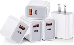 5 Pack USB C Wall Charger Block Dual Port PD Power Delivery Fast Type C Charging Block USB C Adapter Plug Box Brick Cube for iPhone 15 Pro Max Google Pixel 6 5 Galaxy (White)