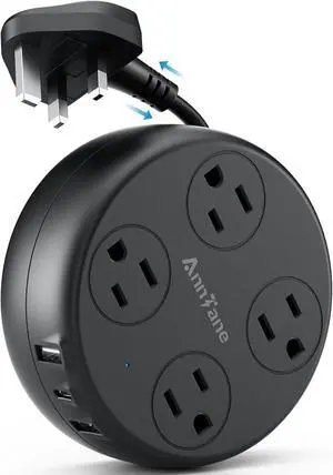 UK Travel Plug Adapter - Retractable Power Strip with 4 AC Outlets & 3 USB Ports (USB-C) Type G Adapter for US to UK Ireland Scotland Hong Kong Dubai (Black)
