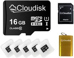 Cloudisk Pack of 5 Micro SD Card 16GB Flash Memory Card Micro SDHC C10 A1 U1 with SD Adapter, Card Reader (16 GB)