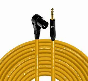 COLUBER CABLE Right Angle XLR Male to 1/4" TRS Male - 100 Feet - Yellow - Pro 3-Pin Microphone Connector for Powered Speakers, Audio Interface or Mixer for Live Performance & Recording