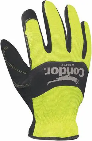 CONDOR 42LA15 Hi-Vis Mechanics Gloves, S, Black/Yellow, Single Layer and