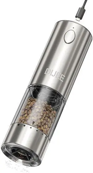Electric Salt and Pepper Grinder Set, Type-C Rechargeable with LED Battery Level Display, Stainless Steel Salt and Pepper Shakers with Storage Base, Top Button Design, 5 Adjustable Coarseness Levels