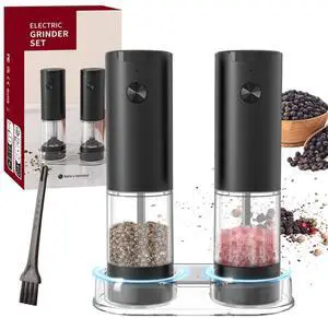 Gravity Electric Salt and Pepper Grinder Set, Automatic Pepper Grinder Shakers Mill, Upgraded Batteries Powered Adjustable Coarseness with LED, One Hand Operation Perfect for Kitchen(Black)