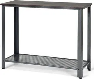 Costway Console Sofa Table W/ Storage Shelf Metal Frame Wood Look Entryway Table Silver