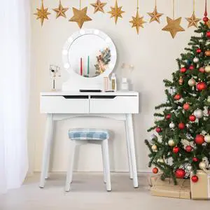 Vanity Dressing Table Set w/Removable Box &10 Dimmable Bulbs Touch Switch Black