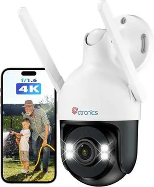 Ctronics 4K 8MP Security Camera Outdoor, PTZ Camera WiFi 2.4/5GHz, AI Human/Vehicle/Pet Detection, Auto Tracking, Color Night Vision, IP66/Metal