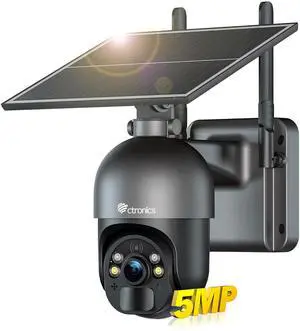Ctronics 3K 5MP Solar Security Camera Outdoor Wireless, 6W Solar Panel, Sound-Light Alarm, PC/App, Auto Tracking, Color Night Vision, PIR Human Detection, 128 TF/Cloud/FTP, IP66