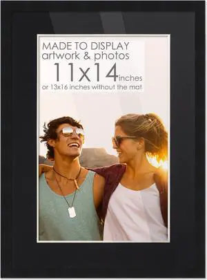 13x16 Black Picture Frame with 10.5x13.5 Black Mat Opening for 11x14 Image, 0.75 Inch Border, UV Acrylic Face, Acid Free Foam Back
