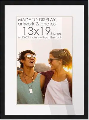15x21 Black Picture Frame with 12.5x18.5 White Mat Opening for 13x19 Image, 0.75 Inch Border, UV Acrylic Face, Acid Free Foam Back