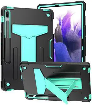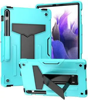 Dteck Kids Case for Samsung Galaxy Tab S8+/S7 FE/S7+ 12.4 inch Tablet, Heavy Duty Shockproof Protective Stand Silicone Case with S Pen Holder, Aqua+Black