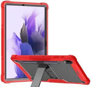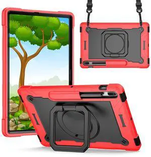 Dteck Rugged Shockproof Case with Handle & 360Swivel Kickstand for Samsung Galaxy Tab S8 Plus/S7+/S7 FE 12.4" (Red & Black)