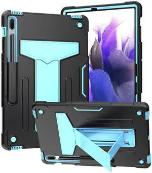 Dteck Galaxy Tab S7 FE 5G & S8+/S7+ Case with Pen Holder, Kickstand, Heavy Duty Rugged Shockproof Protection, Black