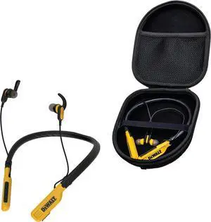 Dewalt Bluetooth Neckband Headphones Protective Case Sets, Wireless Earbuds w/ 30H Playtime, Noise Isolation, IPX6 Jobsite-Ready, EVA Shockproof Water-Resistant Storage Bag Bundle