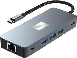 USB C Docking Station Dual Monitor 11 in 1, 4K@60Hz HDMI & DisplayPort Hub with Gigabit Ethernet, 100W PD, USB 3.0, USB C, SD/TF Card Reader, Compatible with MacBook, Dell, HP, Lenovo, Surface