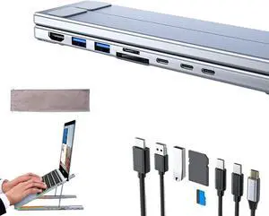 8-in-1 USB-C Laptop Stand, Laptop Docking Station with 4k HDMI, 100w Pd Charging, USB 3.0, Sd/Tf Card Slots, Dual USB-C Ports Compatible for Offices, Corporate Desks, Cafes (8-in-1)