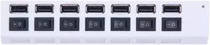 USB Power Adapter 7 Port Multiple Expander 2.0 USB Hub with Switch for PC Multi-Interface (Color : White) (White)
