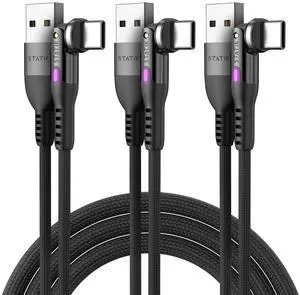 Statik PowerPivot 90 Degree USB C Cable, Right Angle with 360 Swivel Head, 6FT/2M 3-Pack