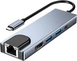 Type C to 5 Ports Docking Station HDMI 4K RJ45 100M Splitter USB 3 0 5Gbps Speed USB C 5 in 1 HUB Adapter Compatible with Laptop