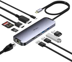 USB C Hub,Docking Station Compatible MacBook Pro & MacBook Air, ipad Pro,Dell XPS, MacBook Docking Station (DP ALT) with 2 HDMI, VGA, Ethernet, Audio, 4 USB Ports, USB-C PD, SD/TF