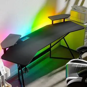 DIXSG 55 Inch Black Gaming Computer Desk with RGB Lights