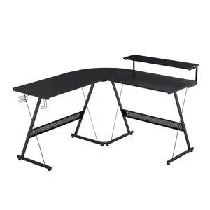 DIXSG L-Shaped Gaming Desk with Storage Shelves - Black