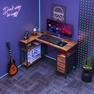 DIXSG Modern L-Shaped Office Desk with Power Outlets, 47-Inch Computer Desk with 3 Drawers and Shelves for Home Office, Study, or Gaming, Rustic Brown