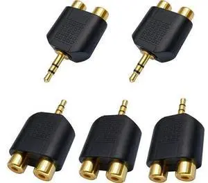 3.5mm to RCA Splitter Adapter Gold Plated 3 Poles 3.5mm (1/8 inch) Stereo Audio Male to 2 RCA Female AUX Audio Y Splitter Adapter Converter (5Pack)
