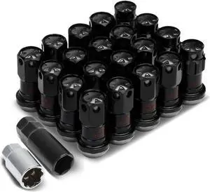 DNA Motoring LG-T888-15-BK 20-Piece M12 x 1.5 Aluminum Alloy Wheel Lug Nuts+Adapter Key (Black)