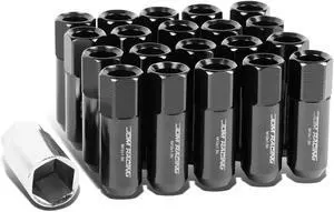 DNA Motoring LN-ZTL-9018-125-BK 20-Piece M12 x 1.25 Aluminum Alloy Wheel Lug Nuts + Deep Drive Extension (Black)