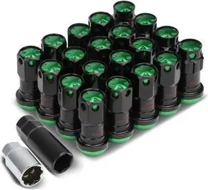 DNA Motoring LN-ZTL-9015-125-GN 16-Piece M12 x 1.25 Aluminum Alloy Wheel Lug Nuts + 4 x Lock Nut + 1 x Lock Nut Key (Green)