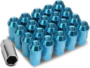 DNA Motoring LN-ZTL-9031-15-BL 20-Piece M12 x 1.5 Open/Closed End Aluminum Alloy Wheel Lug Nuts +1 X Deep Drive Extension (Blue)