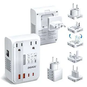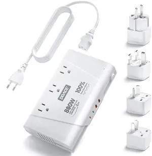 DOACE 800W Travel Adapter Voltage Converter, 220V to 110V Pure Sine Wave Step-Down Transformer for International Travel, 3 AC Outlets & 4 USB, Compatible with Phones, Hair Tools, Cameras & Laptops