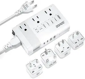 DOACE 220v to 110v converter 350W voltage converter us to europe for Hair Straightener/Curling Iron Converter for European Travel with 4-port USB Charging and UK/AU/US/EU Worldwide Plug Adapter, White