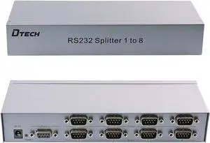 DTech Serial Splitter 8 Port Industrial RS232 Expander COM Port Switch Box with Power Adapter for Sharing PCs and Capture Data - 1x8
