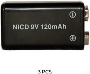 3-Pack 9 Volt NiCd Batteries (120 mAh)