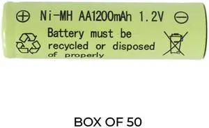 50-Pack AA NiMH 1200 mAh Flat Top Batteries