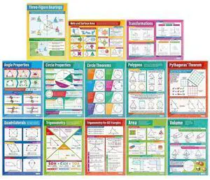 Daydream Education Geometry and Measures Math High School Posters - Set of 13 - EXTRA LARGE 33" x 23.5" - Laminated - Math Middle & High School Classroom Decor