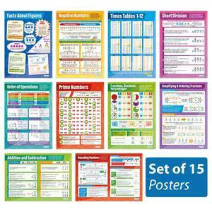 Daydream Education Number Math Classroom Posters - Set of 15 - EXTRA LARGE 33 x 23.5 - Gloss Paper - Math Elementary Class Decoration - Wall Charts
