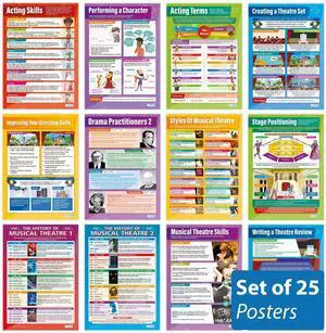 Daydream Education Drama Posters - Set of 25 - EXTRA LARGE 33 x 23.5" - Gloss Paper - Drama & Theater Middle & High School Classroom Decoration - Wall Charts