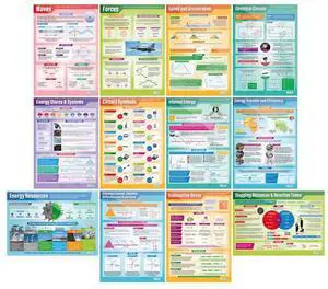 Daydream Education Physics Classroom Posters - Set of 12 - EXTRA LARGE 33" x 23.5" - Gloss Paper - STEM Middle & High School Class Decoration - Wall Charts