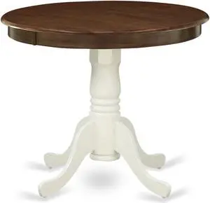 AMT-WLW-TP Antique Dining Table Made of Rubber Wood offering Walnut Finish Table Top, 36 Inch Round, Linen White Pedestal