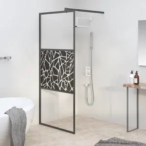 vidaXL Walk-in Shower Wall 31.5"x76.8" Half Frosted ESG Glass Black